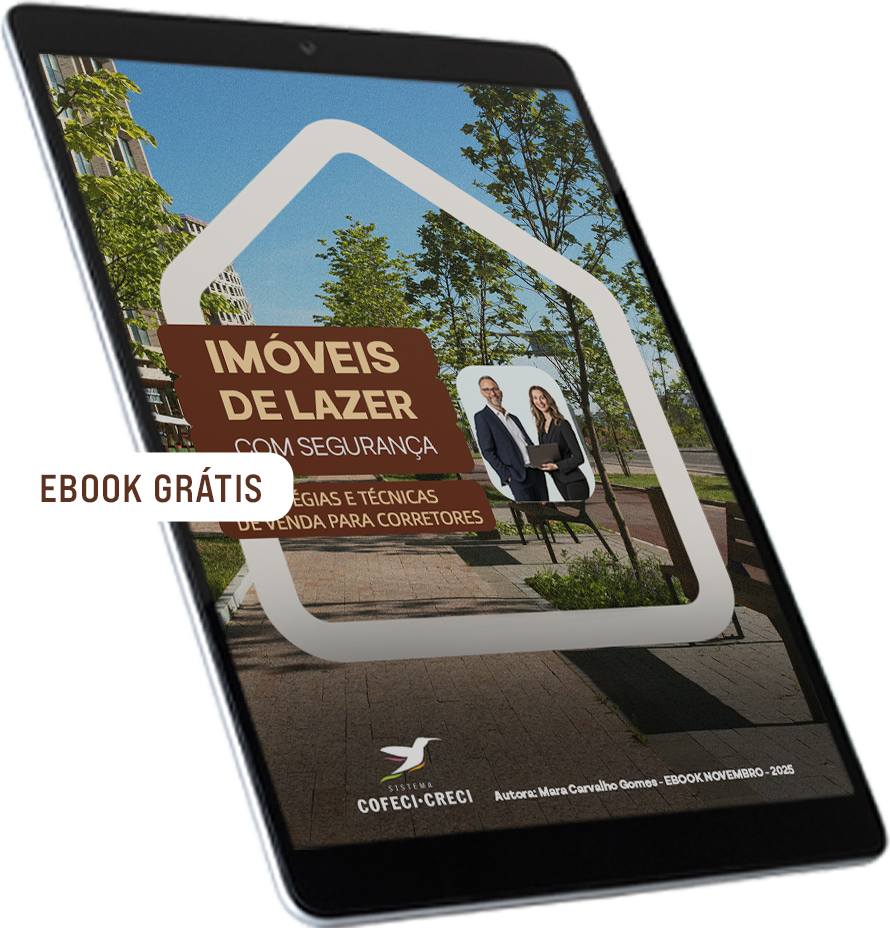 No ebook deste mês - IMÓVEIS DE LAZER COM SEGURANÇA: ESTRATÉGIAS E TÉCNICAS DE VENDA PARA CORRETORES - reunimos tudo o que o corretor precisa saber: estratégias de prospecção, checklist jurídico, técnicas de comunicação e roteiro de venda para imóveis de lazer.